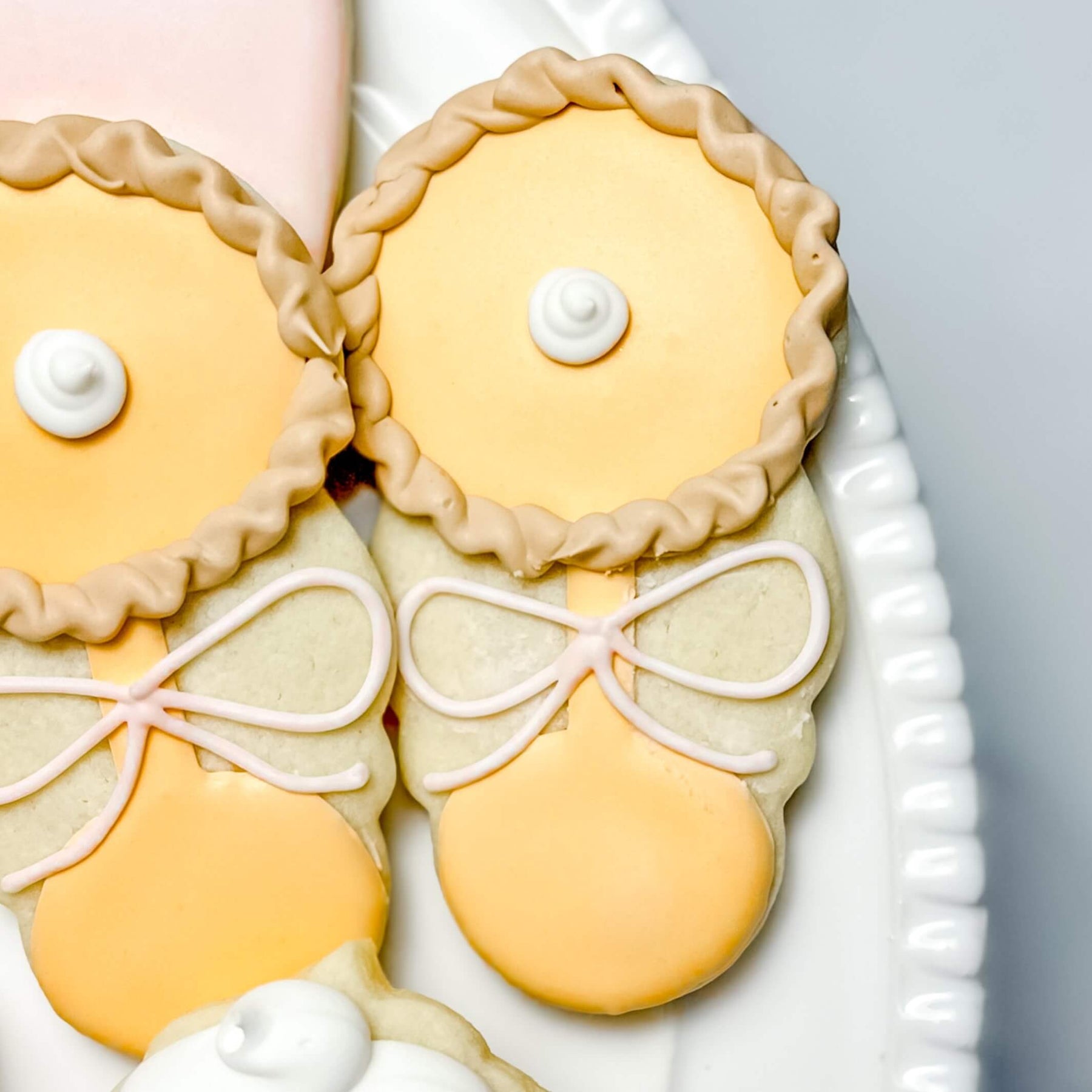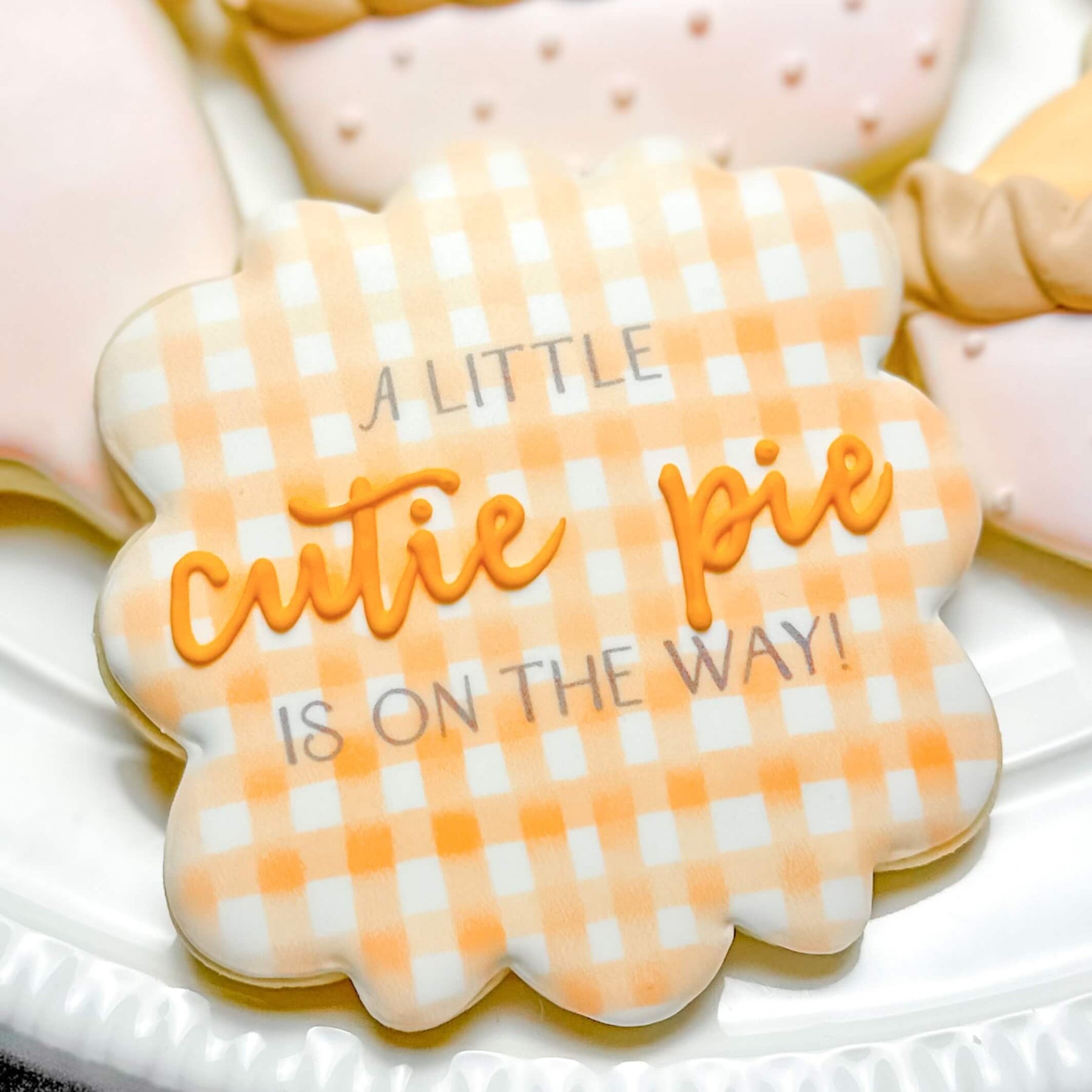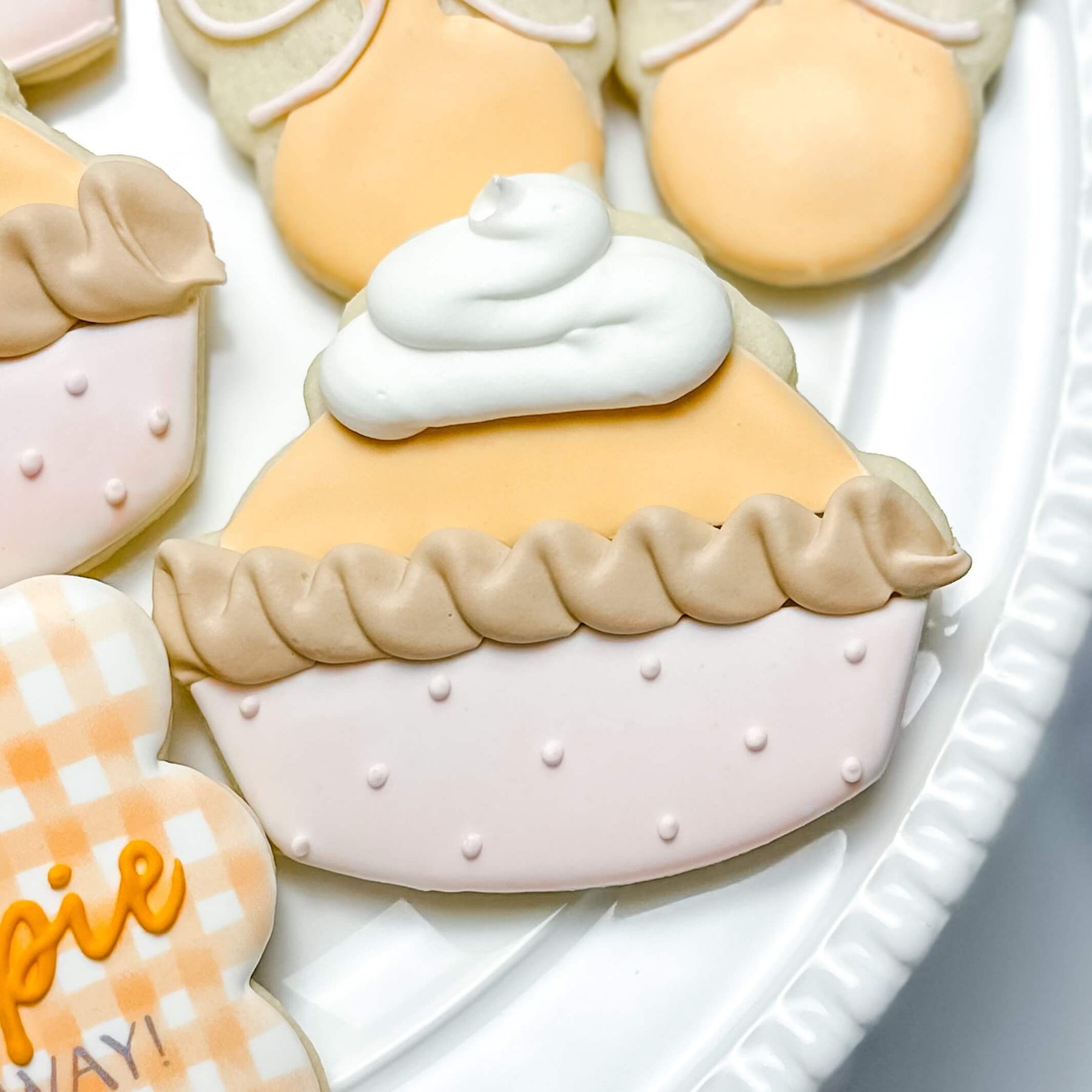 Celebrate a sweet little pumpkin with these fall favorites! This cookies set includes "cutie pie" plaques, pumpkin rompers, pumpkin pie rattles, and pumpkin pies topped with whipped cream. Individual wrapping is included.