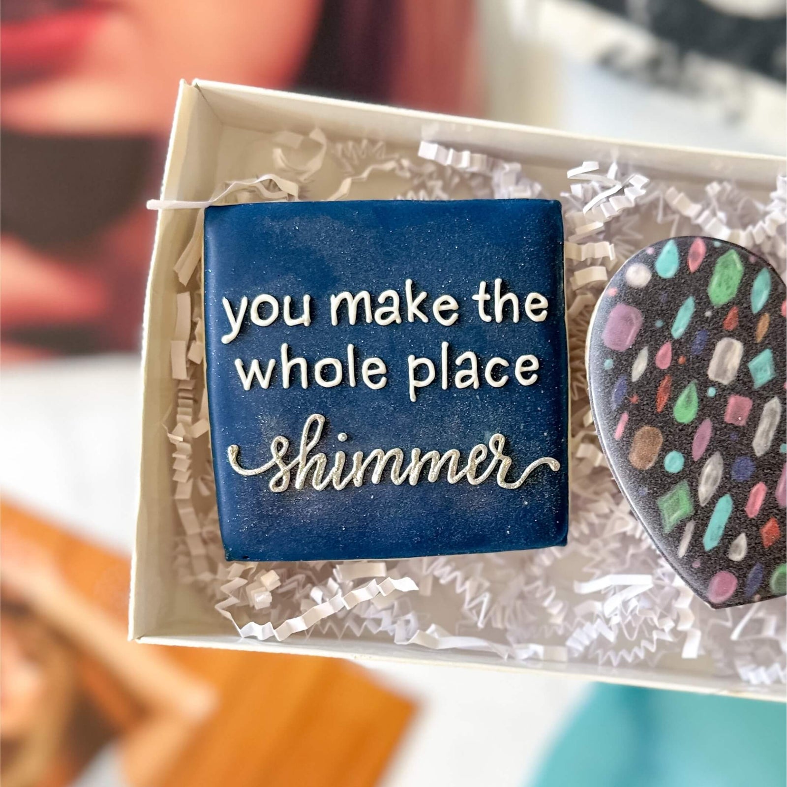 The perfect gift for your latte loving friend or family member! This decorated cookie duo will come exactly as pictured and will include the white cookie gift box and white crinkle paper.