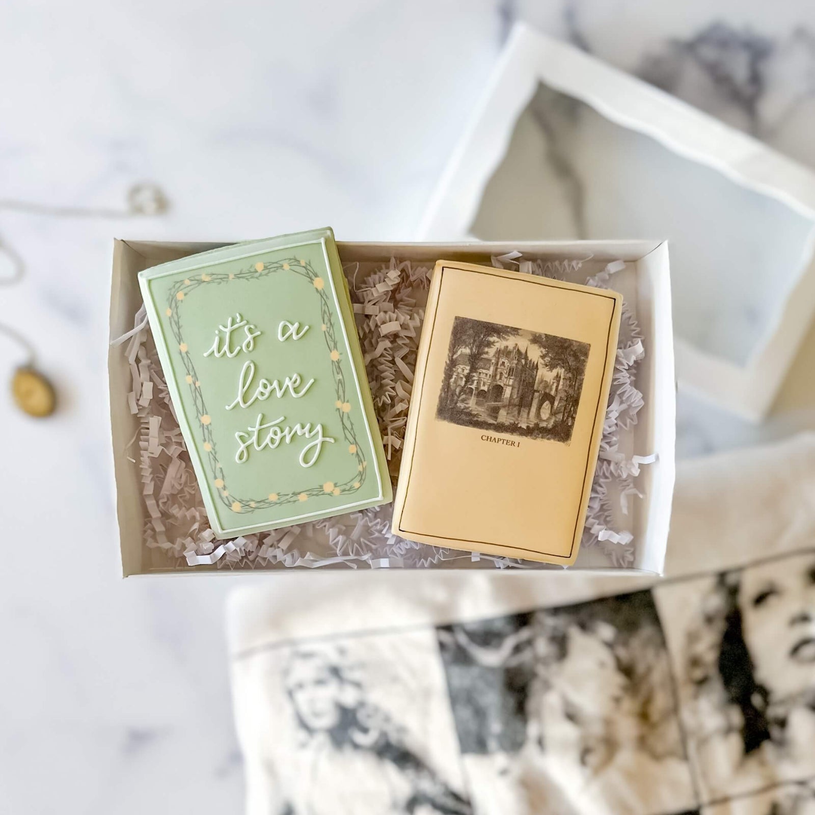 The perfect ending to your favorite love story! The sugar cookies will come decorated as pictured. The white cookie gift box, white crinkle paper and individual wrapping is included in the price.