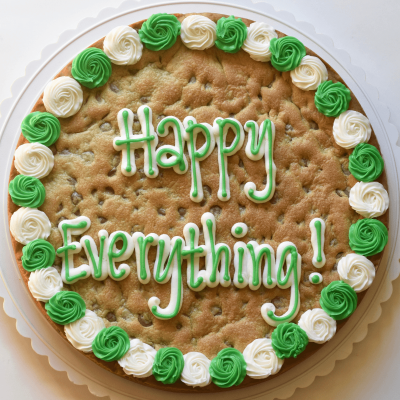 Our decorated cookie cakes make all events extra special by adding your own color selection personal message on top.