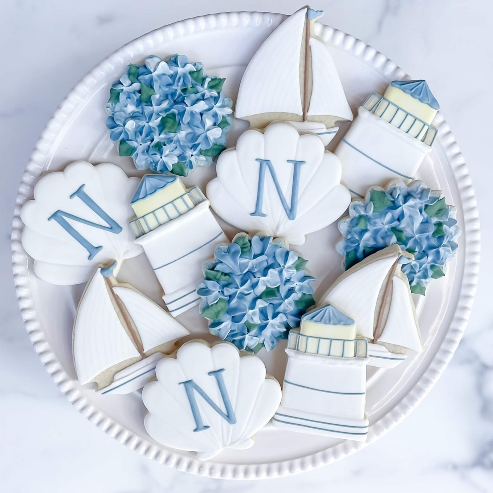 Bring in the good vibes with this East Coast themed set--perfect for birthdays, weddings, baby showers, or housewarmings. The set comes with hydrangeas, lighthouses, sailboats, and shells personalized with an initial. Individual wrapping is included in the price.