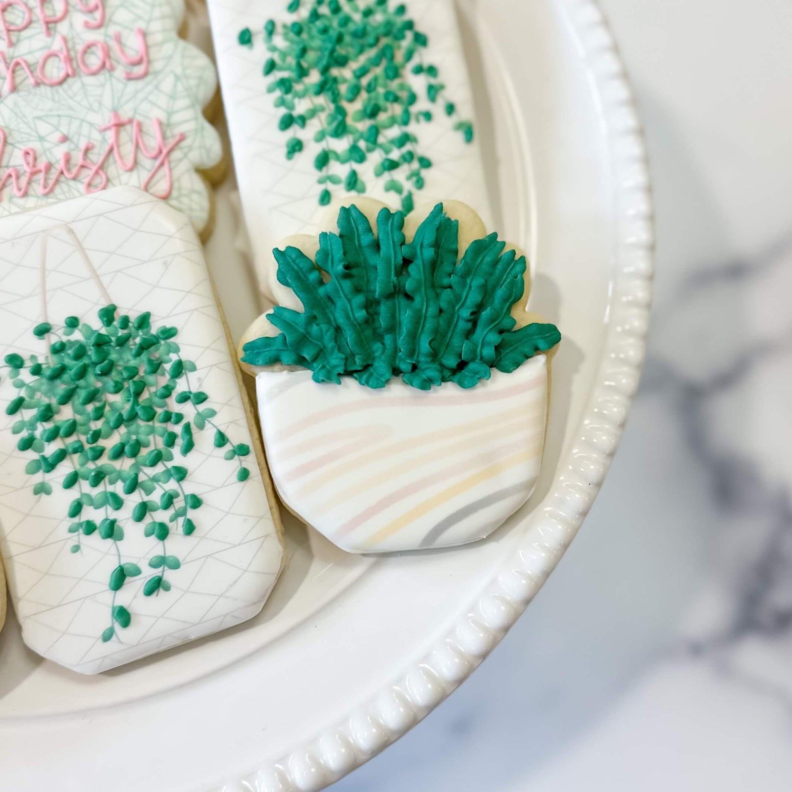 This decorated cookie set is the perfect birthday gift for your loved one who loves ALL the plants! The sugar cookies will come decorated as pictured and will feature an equal mix of hang plants, potted plants and personalized Happy Birthday plaque cookies. Individual wrapping is included in the price of the set.